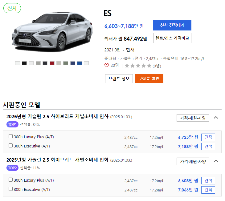 현재 2025 렉서스 ES는 인기 차종 중 하나로 손꼽히고 있습니다.