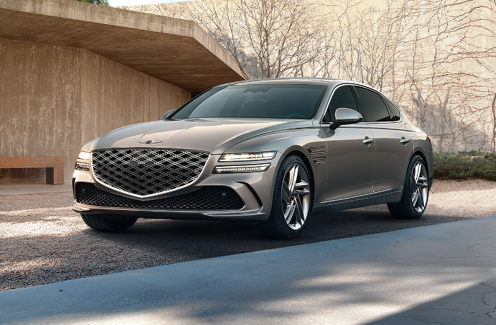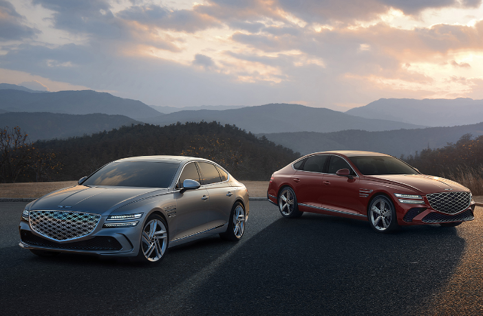 - 웅장하고 세련된 디자인: 제네시스만의 고급스러운 디자인 언어를 적용하여 웅장하면서도 세련된 외관을 자랑합니다. 특히, 두 줄 디자인의 헤드램프와 크레스트 그릴은 제네시스의 상징적인 디자인 요소로 자리 잡았습니다.