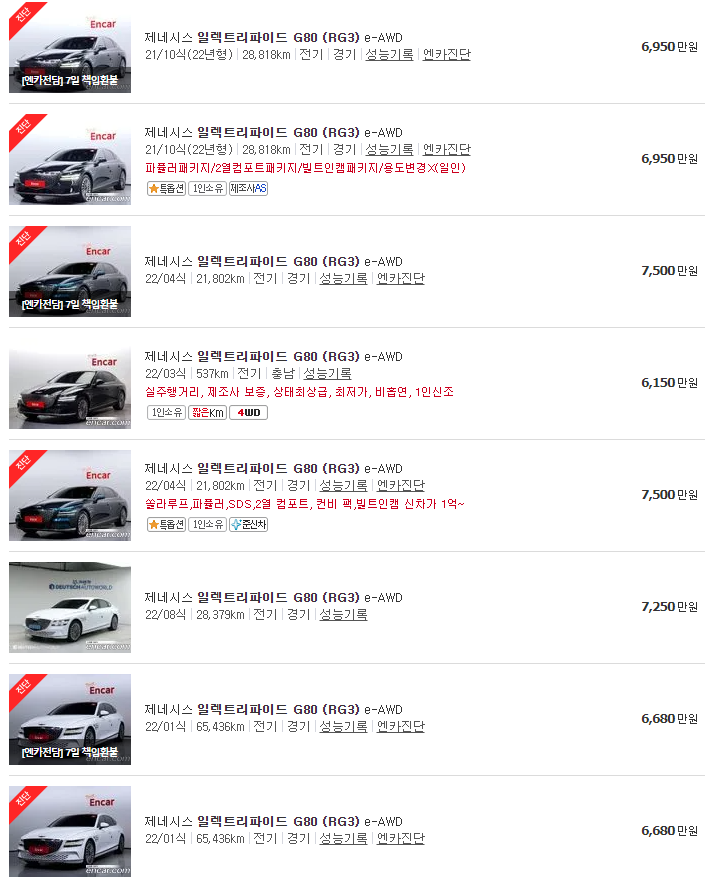 제네시스 일렉트리파이드 G80 (RG3)(21년~현재) : 6,437 ~ 8,258만 원