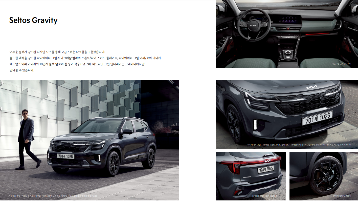 오늘은 2024년형 셀토스의 성능 제원과 크기, 연비와 디자인 등에 대해 알아보도록 하겠습니다. 글아래에 2024년형 셀토스의 카탈로그와 가격표 파일을 첨부해두었으니, 파일을 다운받아 보다 자세한 정보를 확인하세요.