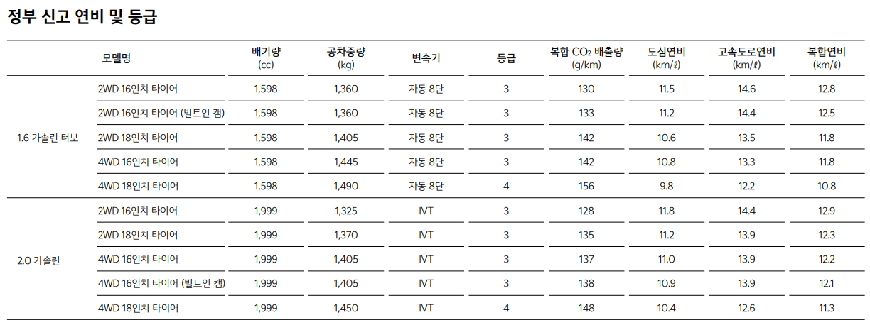 셀토스 연비 제원표