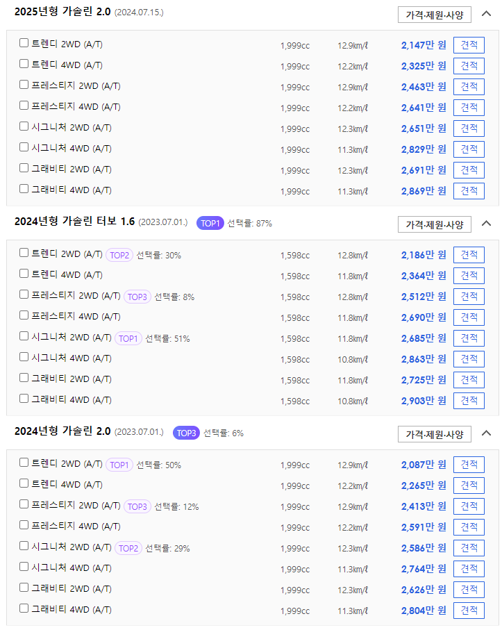 👇👇👇셀토스 경쟁차량 신차 정보👇👇👇