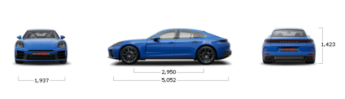 파나메라4의 크기는 전장 5052mm, 전고 1423mm, 전폭 1937mm, 축거 2950mm입니다.