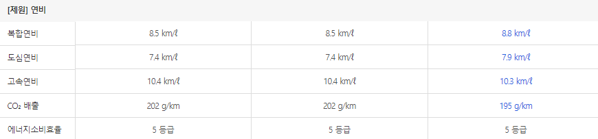연비도 함께 알아보겠습니다. 아래는 파나메라 4의 연비표입니다.