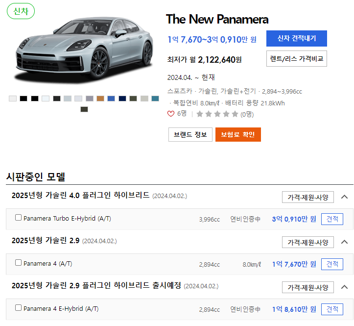 👇👇👇파나메라4 경쟁차량 신차 정보👇👇👇