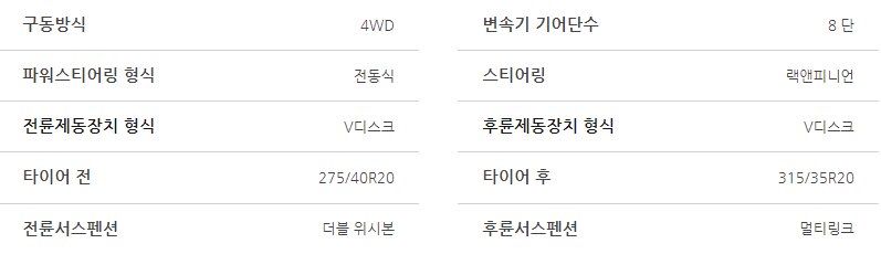 - 엔진: 2.9L V6 트윈 터보 엔진 (353마력)