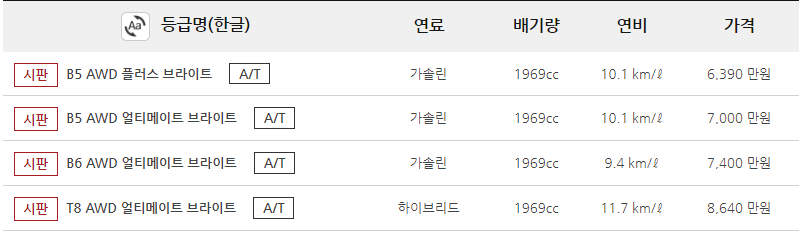 - 엔진: 가솔린, 디젤, 하이브리드 등 다양한 엔진 라인업