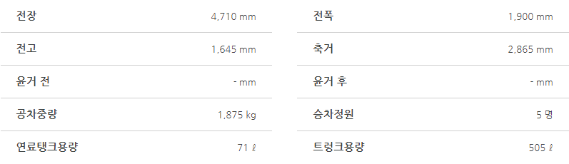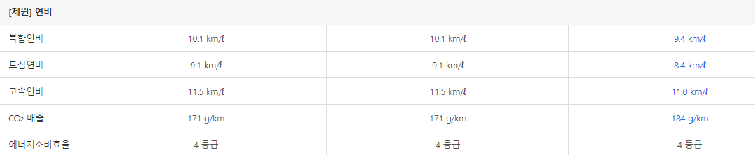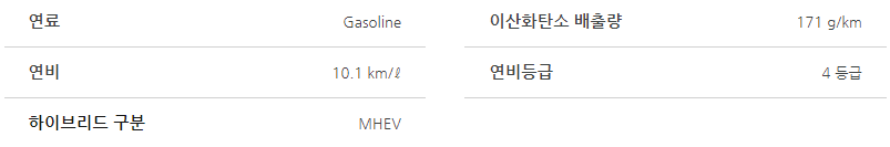 - 연비: 엔진 종류 및 주행 조건에 따라 상이