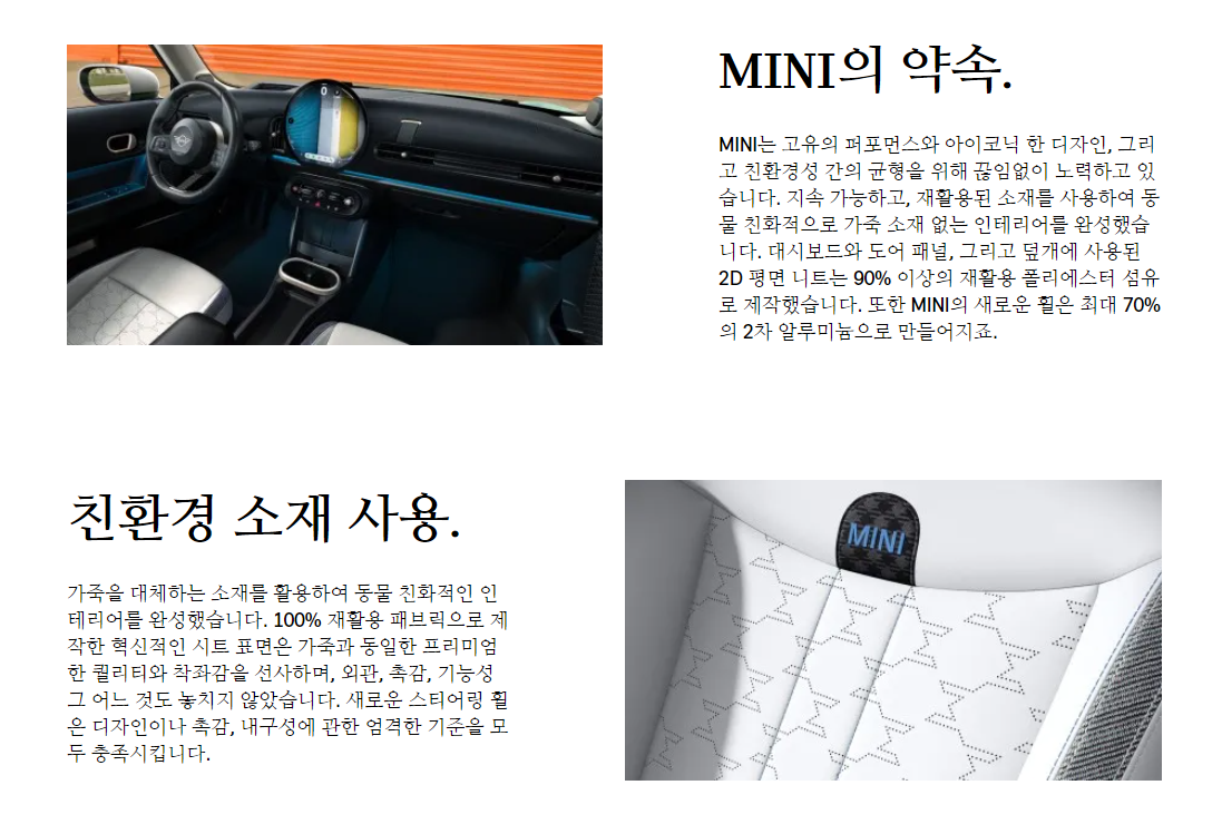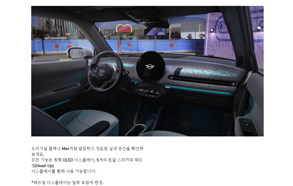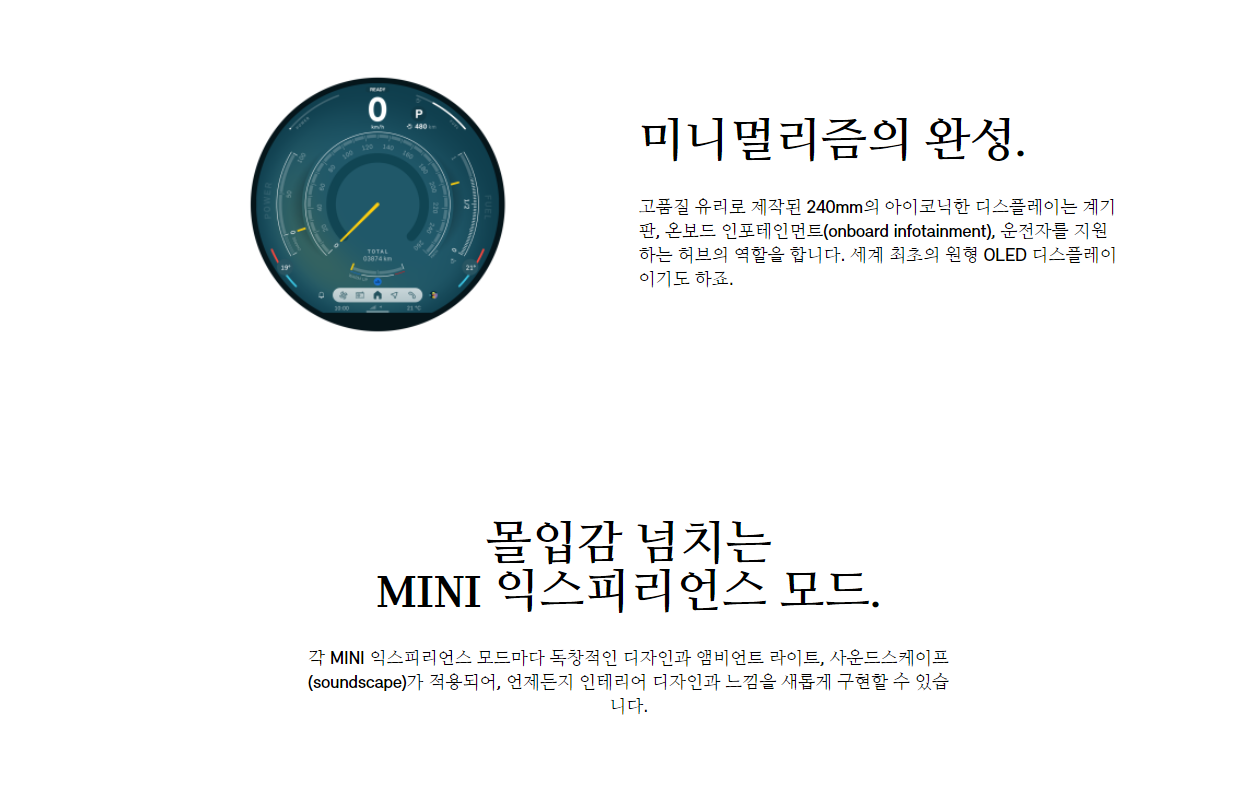 - 둥근 라운드 형태의 디자인: 미니 쿠퍼만의 아이덴티티를 나타내는 독특한 디자인