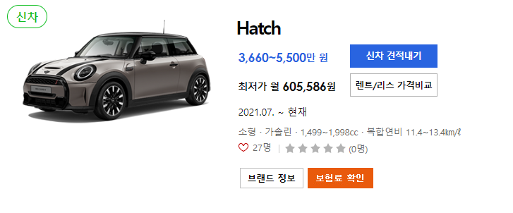 👇👇👇미니 쿠퍼 경쟁차량 신차 정보👇👇👇
