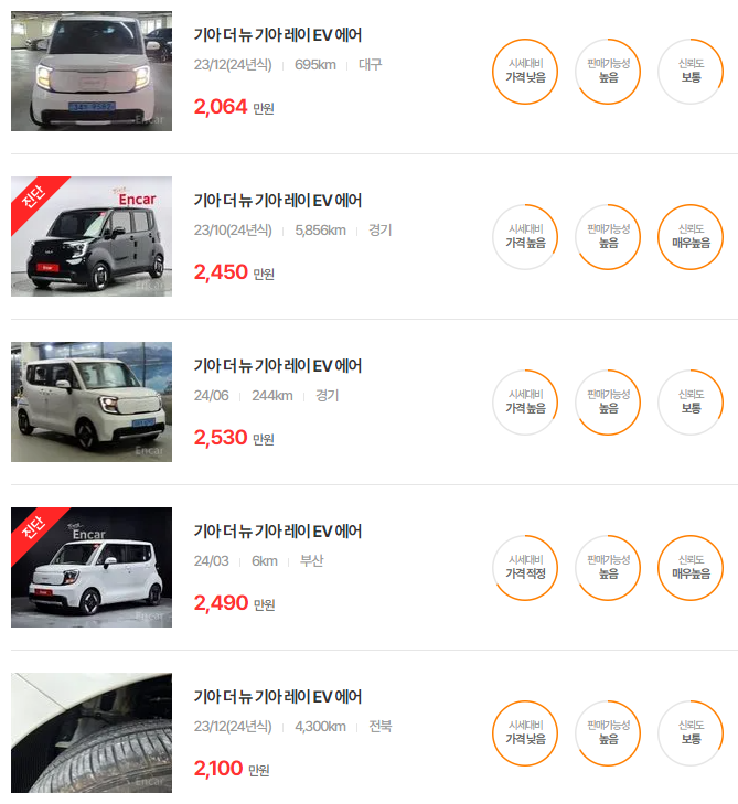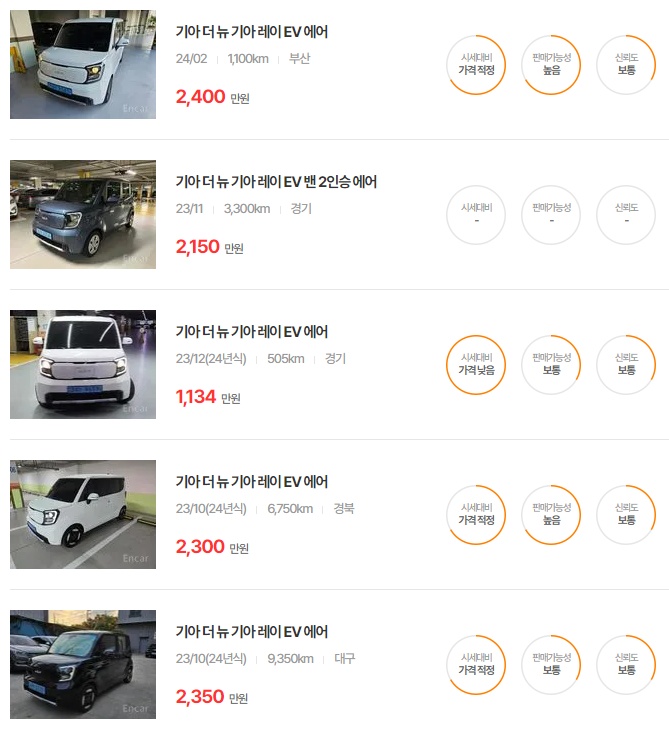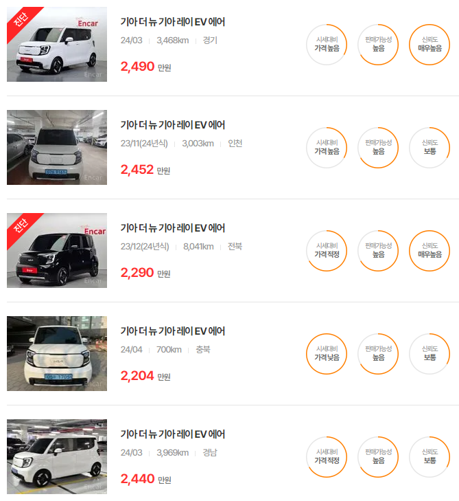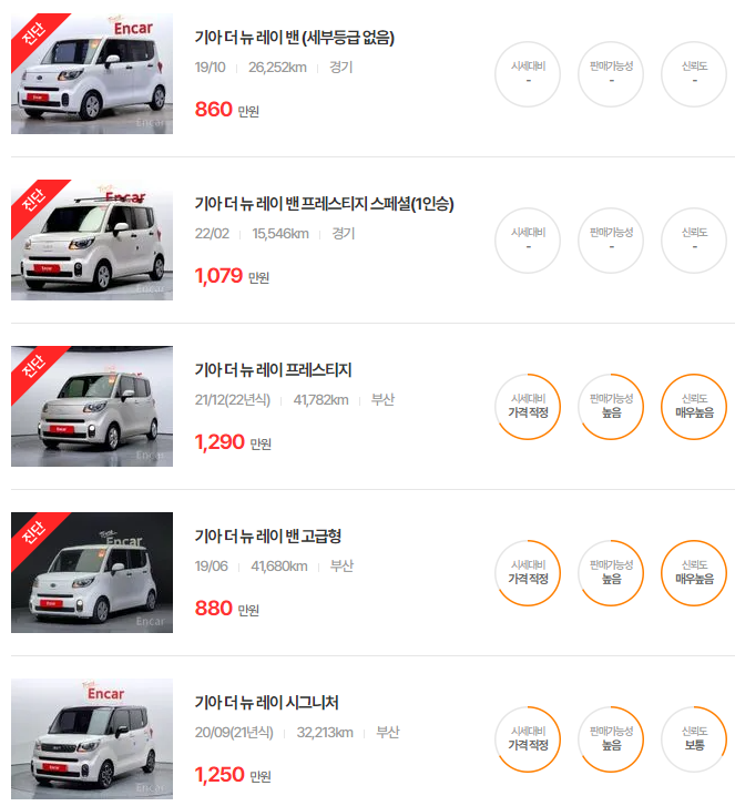 - 현재 인기 있는 차종은 2022년식 기아 레이입니다.