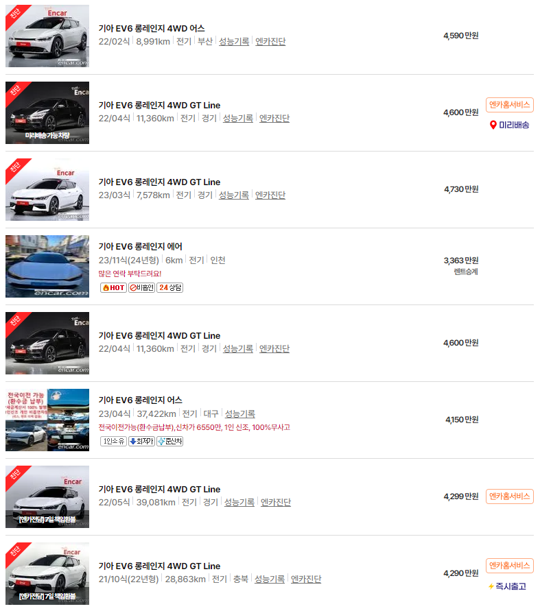 기아 더 뉴 EV6는 전기 SUV 시장에서 인기를 끌고 있으며, 특히 2023년식 모델이 많은 수요를 보이고 있습니다.