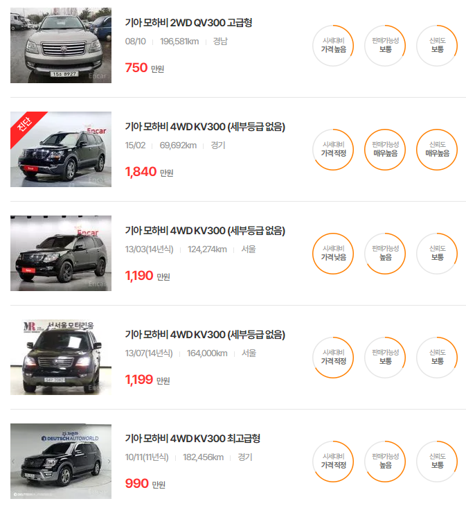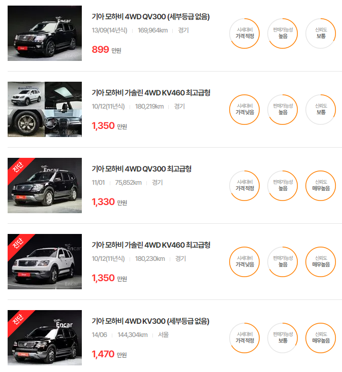 기아 모하비 중고차 가격