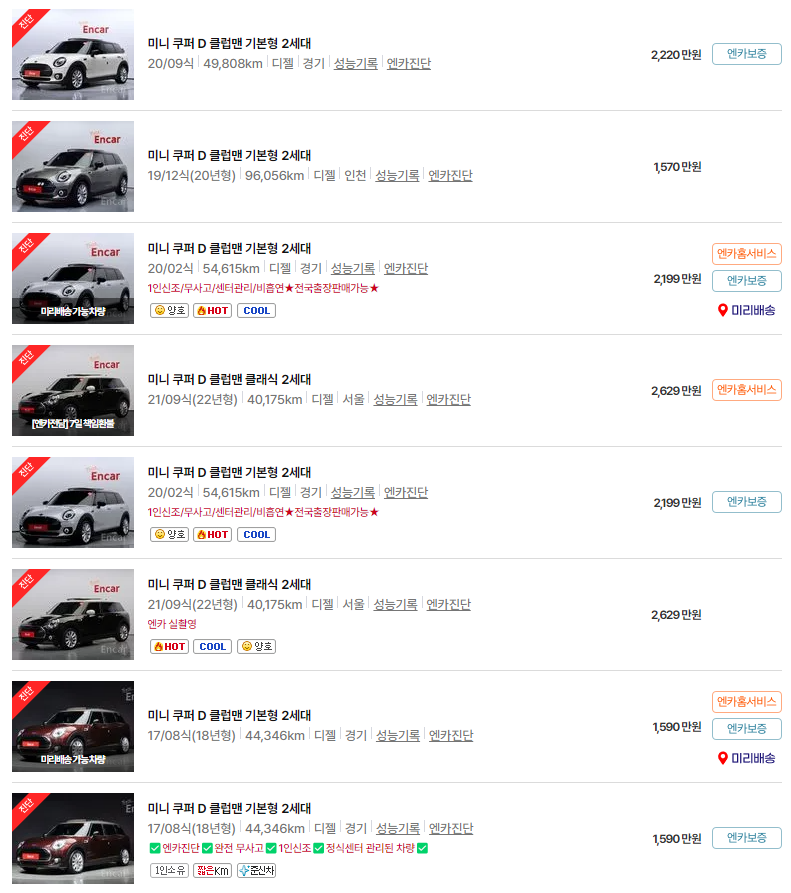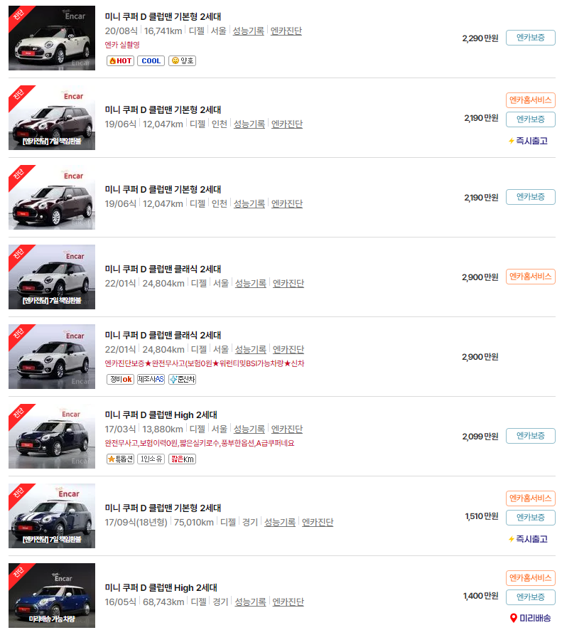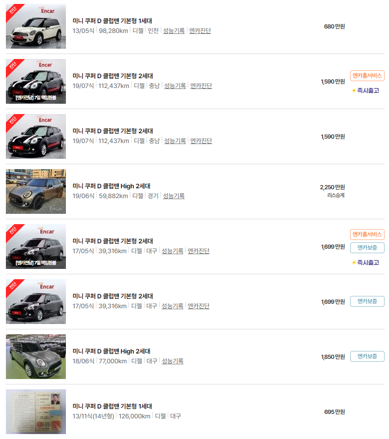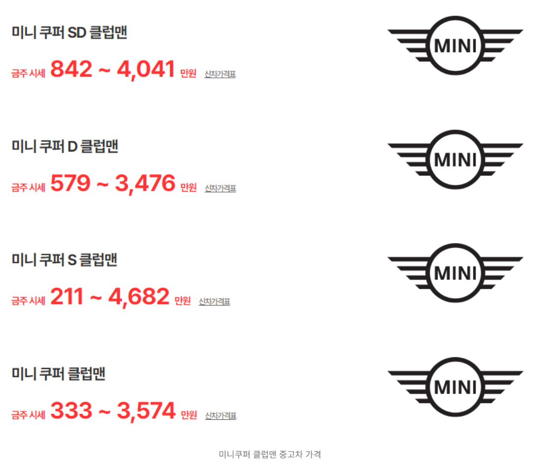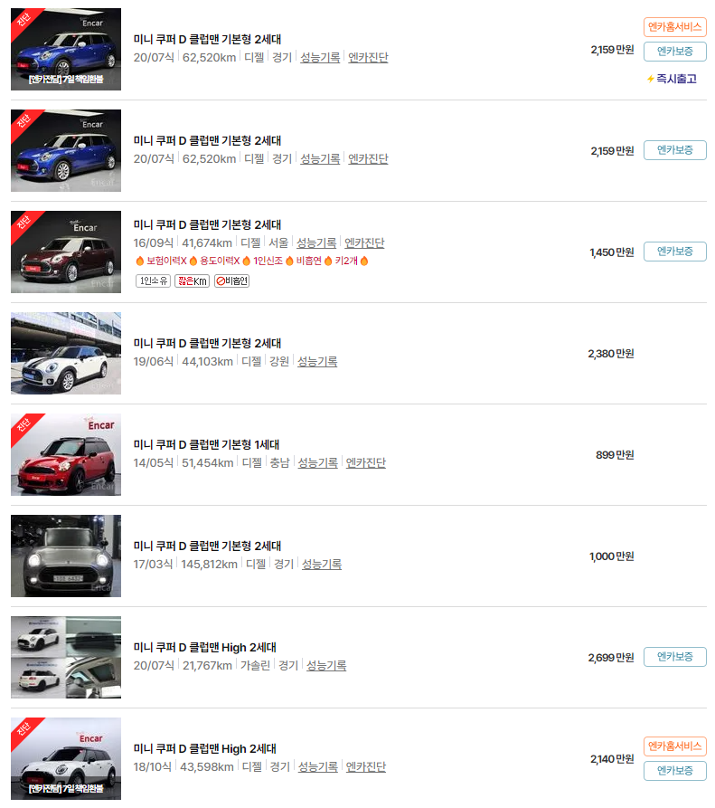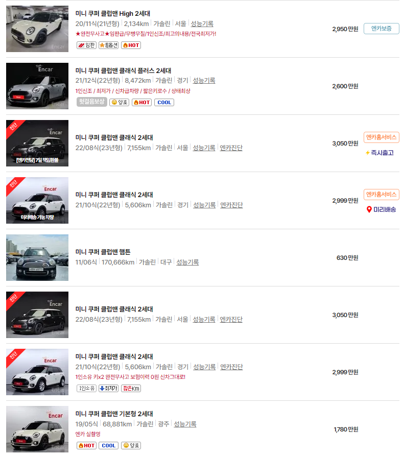이번 글에서는 미니 클럽맨의 중고차 가격, 연식별 시세, 그리고 차량 유지비에 대해 알아보았습니다. 각종 정보가 미니 클럽맨 중고차를 고려하시는 데 도움이 되었길 바랍니다.