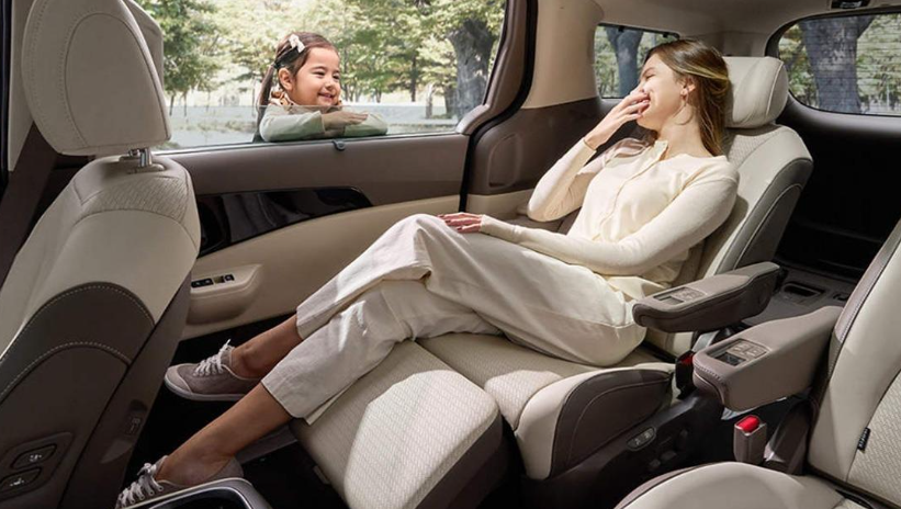- 넓고 편안한 실내 공간: 카니발 하이브리드는 넉넉한 좌석 공간과 다양한 시트 배열을 통해 최대 11명까지 탑승이 가능합니다. 특히 2열 릴렉션 시트는 장거리 여행 시 최고의 편안함을 제공합니다.