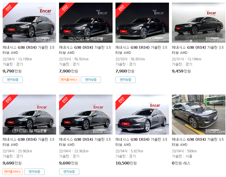 여기까지 제네시스 g90의 중고차 가격을 알아보았습니다. 제네시스 g90 중고차 시세가 궁금하셨던 분들은 위 가격표 또는 엔카, Kcar, KB차차차와 같은 중고차 시세 사이트를 참고해서 구매하시면 좋을 것 같습니다.
