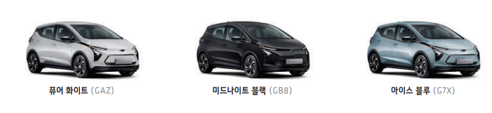 볼트 EV의 다양한 색상을 살펴보겠습니다.