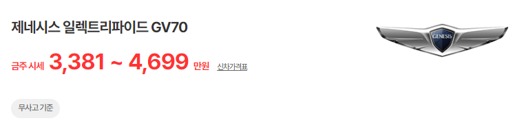 제네시스 일렉트리파이드 GV70(22년~현재) : 6,013 ~ 8,376만 원