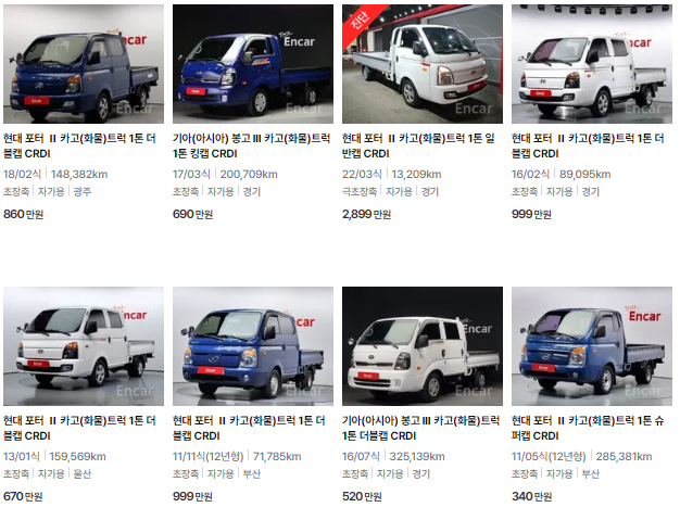 여기까지 1톤 트럭의 중고차 가격을 알아보았습니다. 1톤 트럭 중고차 시세가 궁금하셨던 분들은 위 가격표 또는 엔카, Kcar, KB차차차와 같은 중고차 시세 사이트를 참고해서 구매하시면 좋을 것 같습니다.