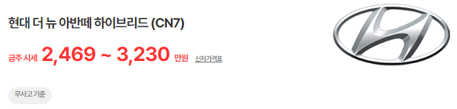 더 뉴 아반떼 하이브리드 (CN7)(23년~현재) : 2,448 ~ 3,213만 원