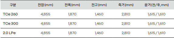 아래는 르노 SM6의 제원표입니다. 차량의 성능에 대해서 상세하게 알아보도록 하겠습니다.