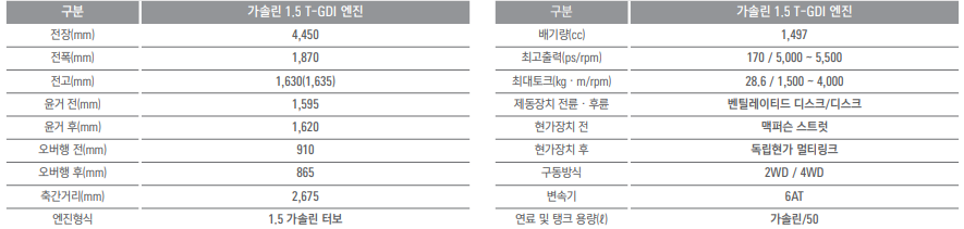 코란도 제원표