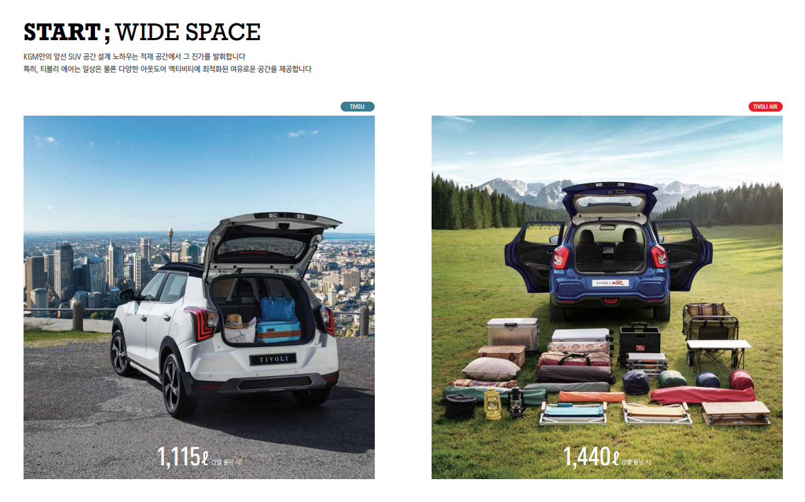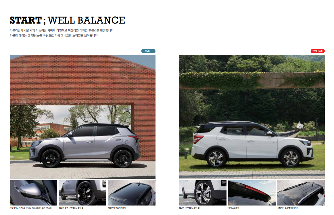 - 쌍용 티볼리 에어: 티볼리의 롱바디 모델로, 더욱 넓은 적재 공간을 제공합니다.