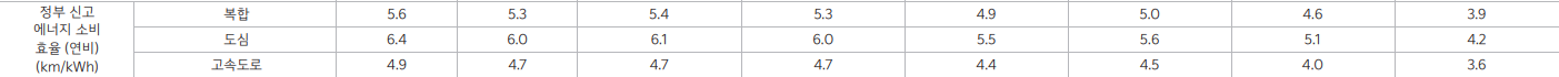 연비도 함께 알아보겠습니다. 아래는 EV6의 연비표입니다.