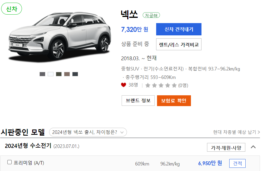 👇👇👇 넥쏘 경쟁차량 신차 정보 👇👇👇