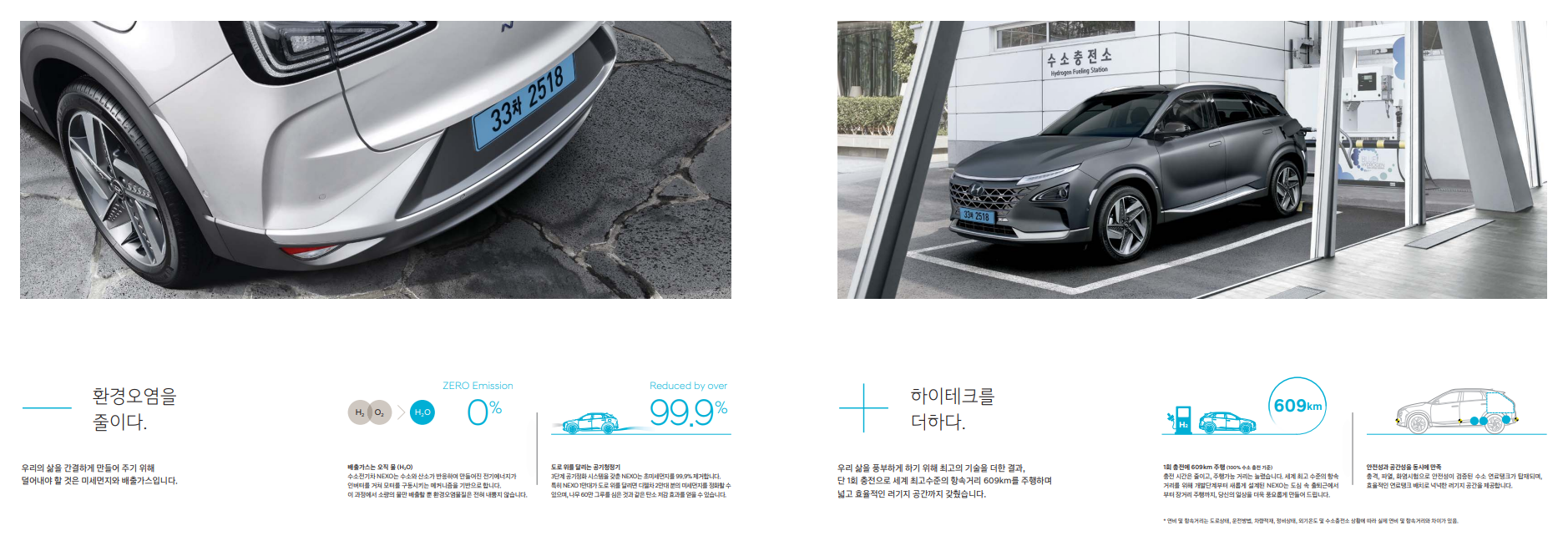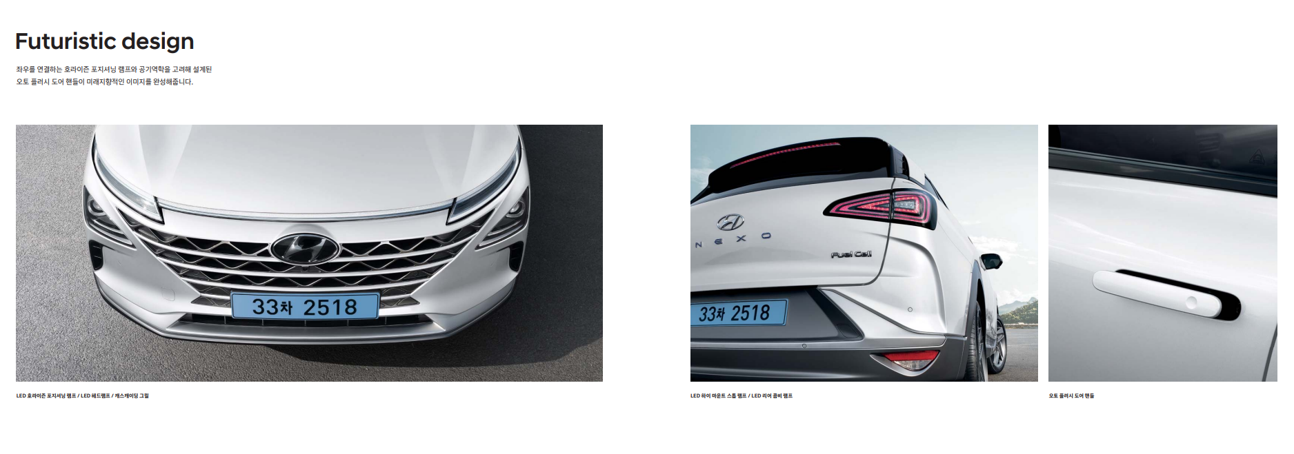 - 뛰어난 친환경성: 배기가스 대신 물만 배출하는 수소 연료전지 차량으로 깨끗한 환경을 만들 수 있습니다.