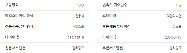 아래는 gv70 전기차의 제원표입니다. 차량의 성능에 대해서 상세하게 알아보도록 하겠습니다.