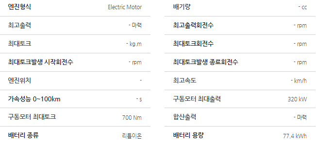 - 급속 충전 시간: 350kW급 충전기 기준 18분 만에 배터리 용량의 10%에서 80%까지 충전 가능