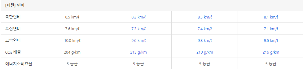 연비도 함께 알아보겠습니다. 아래는 포르쉐 911의 연비표입니다.