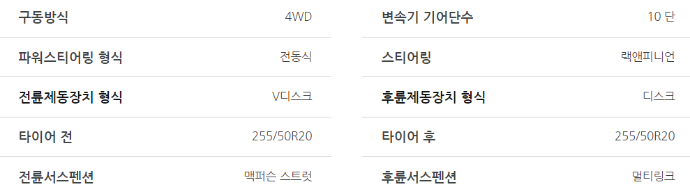 - 9단 자동변속기: 부드러운 변속과 효율적인 연비를 실현합니다.