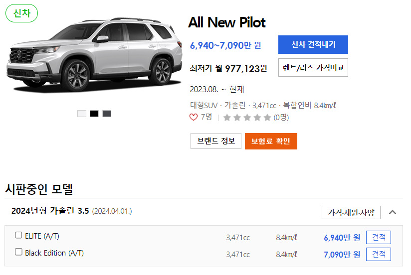 👇👇👇 혼다 파일럿 경쟁차량 신차 정보 👇👇👇