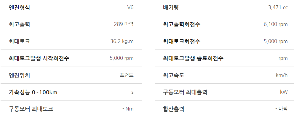 - 뛰어난 연비 효율성: V6 엔진을 탑재하면서도 동급 대비 뛰어난 연비를 자랑합니다.
