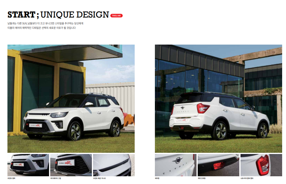 티볼리 에어의 디자인을 살펴보겠습니다.