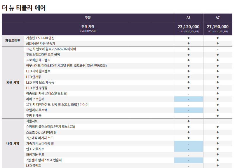 🚗🚗🚗티볼리 에어 가격표 다운로드🚗🚗🚗