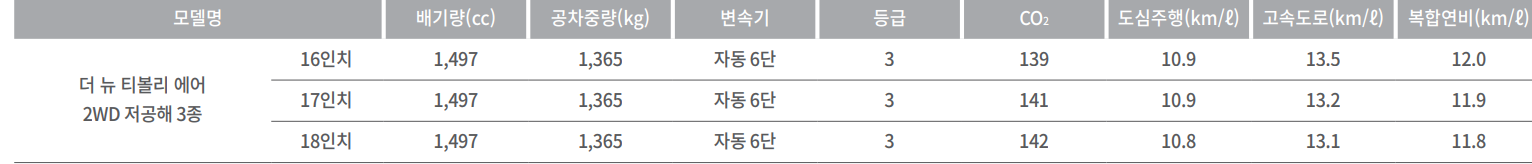 티볼리 에어 연비 제원표