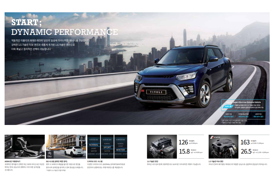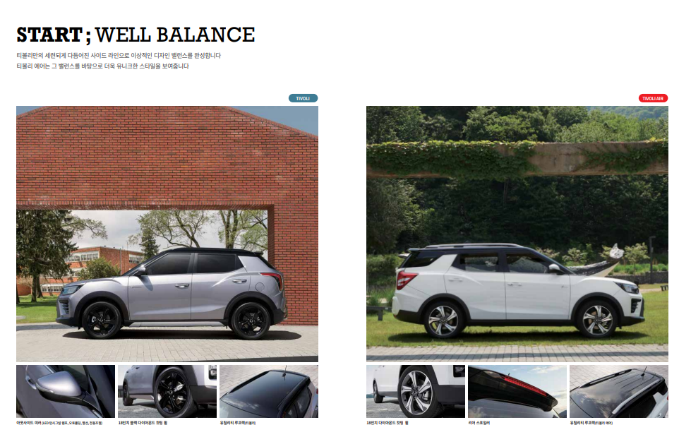 오늘은 2024년형 티볼리 에어의 성능 제원과 크기, 연비와 디자인 등에 대해 알아보도록 하겠습니다. 글아래에 2024년형 티볼리 에어의 카탈로그와 가격표 파일을 첨부해 두었으니, 파일을 다운로드하여 보다 자세한 정보를 확인하세요.
