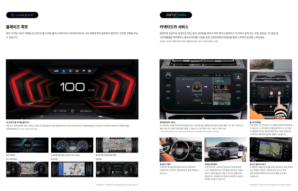 - 인포테인먼트 시스템: 스마트폰 연동, 내비게이션 등 다양한 기능을 제공합니다.