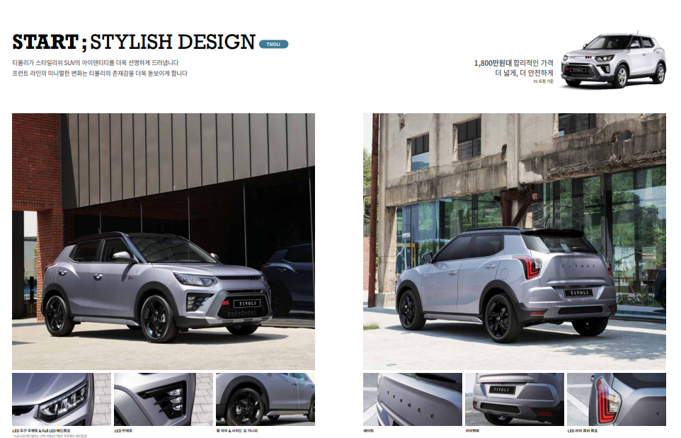 더욱 쉽게 가격과 제원을 확인하도록 하기 위해 가격표와 카탈로그를 다운로드하실 수 있도록 올려드립니다. 티볼리 에어 가격표와 카탈로그 다운로드는 아래에서 가능합니다. 조금 더 정확한 가격과 제원을 살펴보시기 바랍니다.