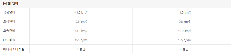 연비도 함께 알아보겠습니다. 아래는 볼보 v90 크로스 컨트리의 연비표입니다.