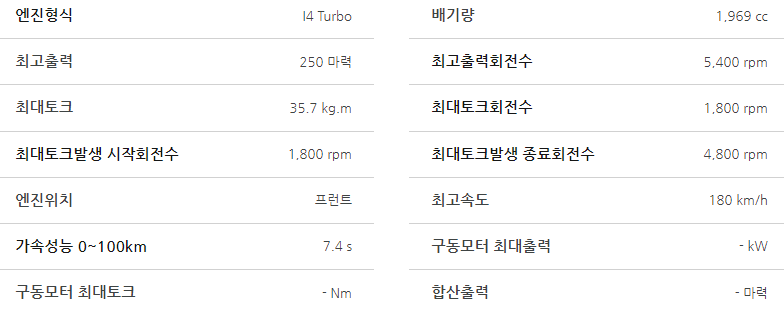 - 구동 방식: AWD (전륜 구동)