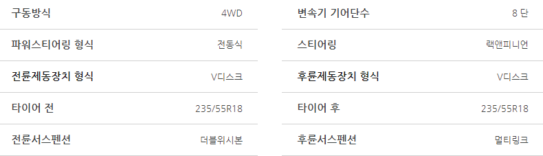 - 변속기: 8단 자동 변속기