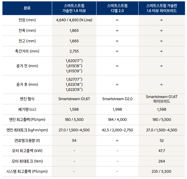 - 엔진: 1.6 가솔린 터보 엔진