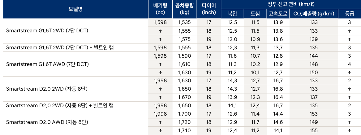 투싼 연비 제원표