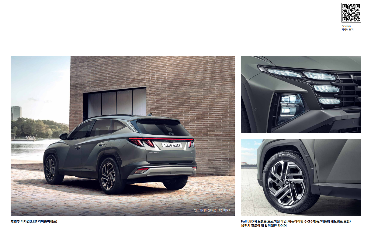 투싼은 파라메트릭 히든 램프라는 독특한 디자인 요소를 적용하여 미래지향적인 이미지를 강조합니다.