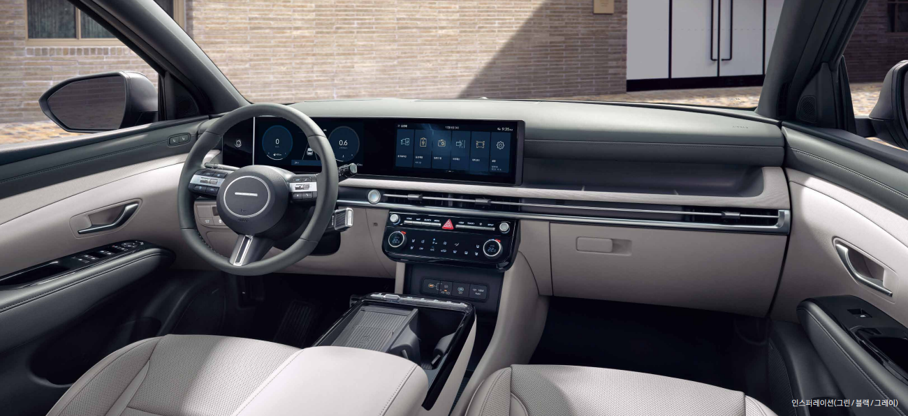 내부 디자인: 투싼의 실내는 운전자 중심으로 설계되어 편리한 조작성을 제공하며, 고급스러운 소재를 사용하여 품질감을 높였습니다.