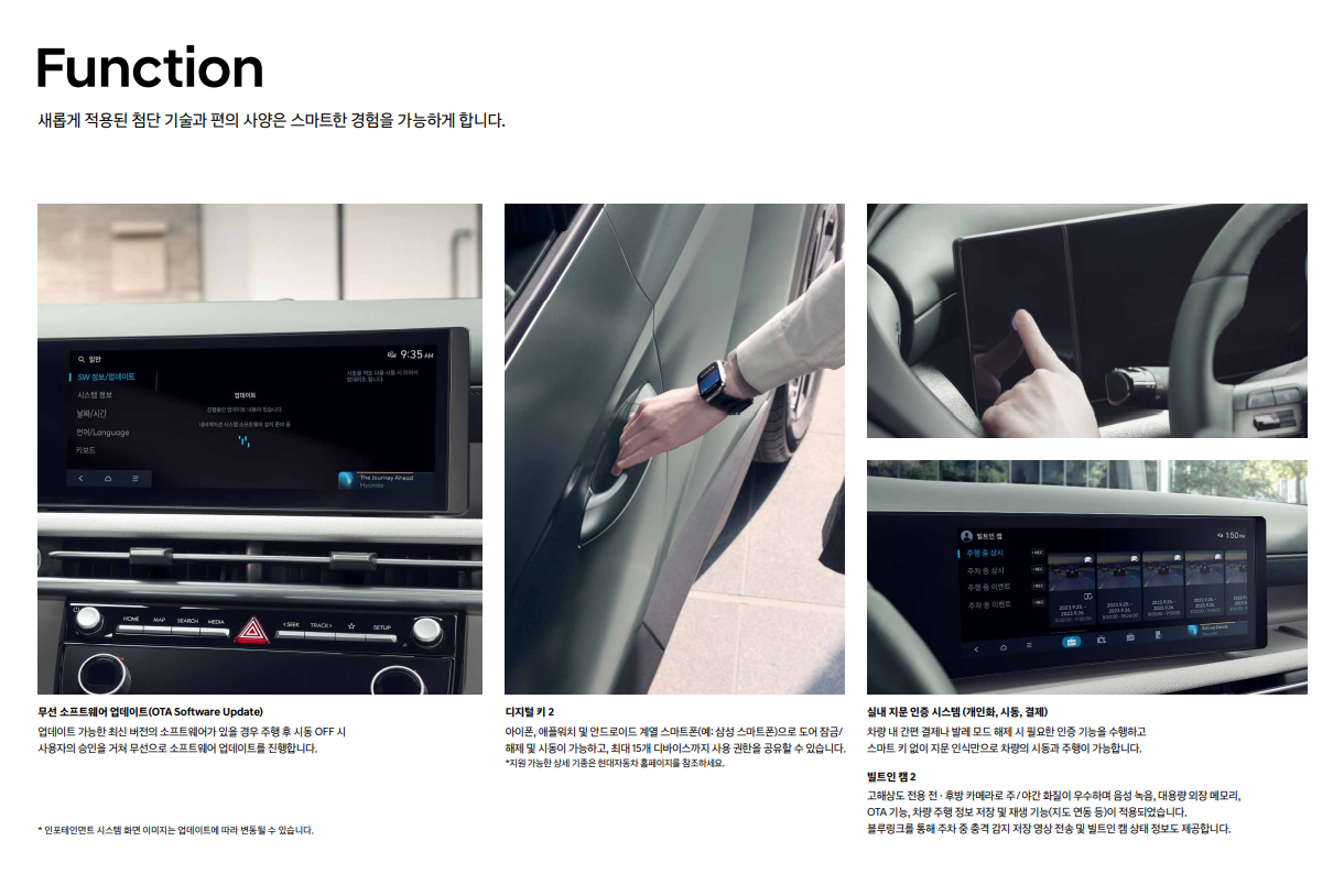 - 첨단 편의 기능: 최신 인포테인먼트 시스템과 다양한 운전자 보조 시스템을 통해 편리하고 안전한 운전을 지원합니다.